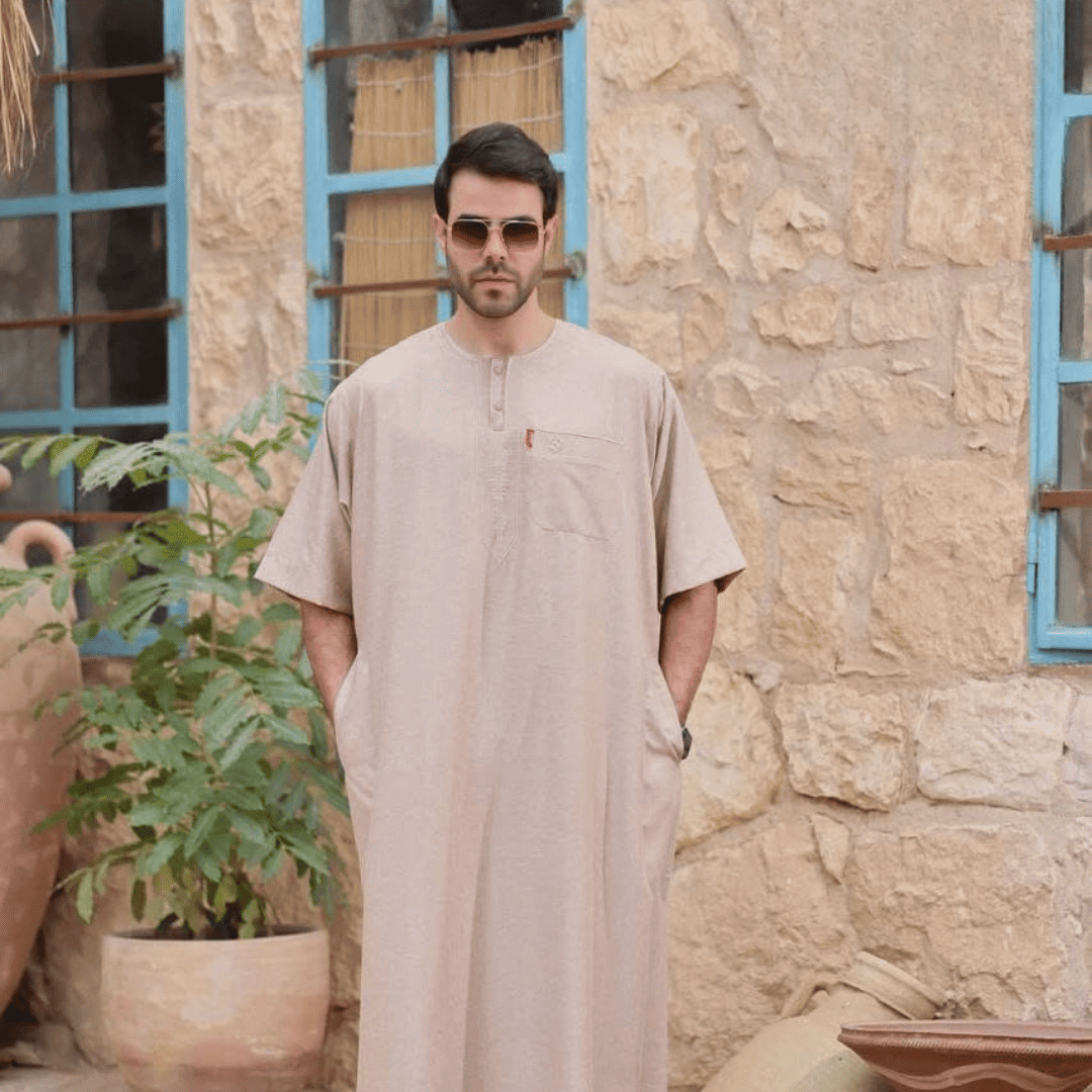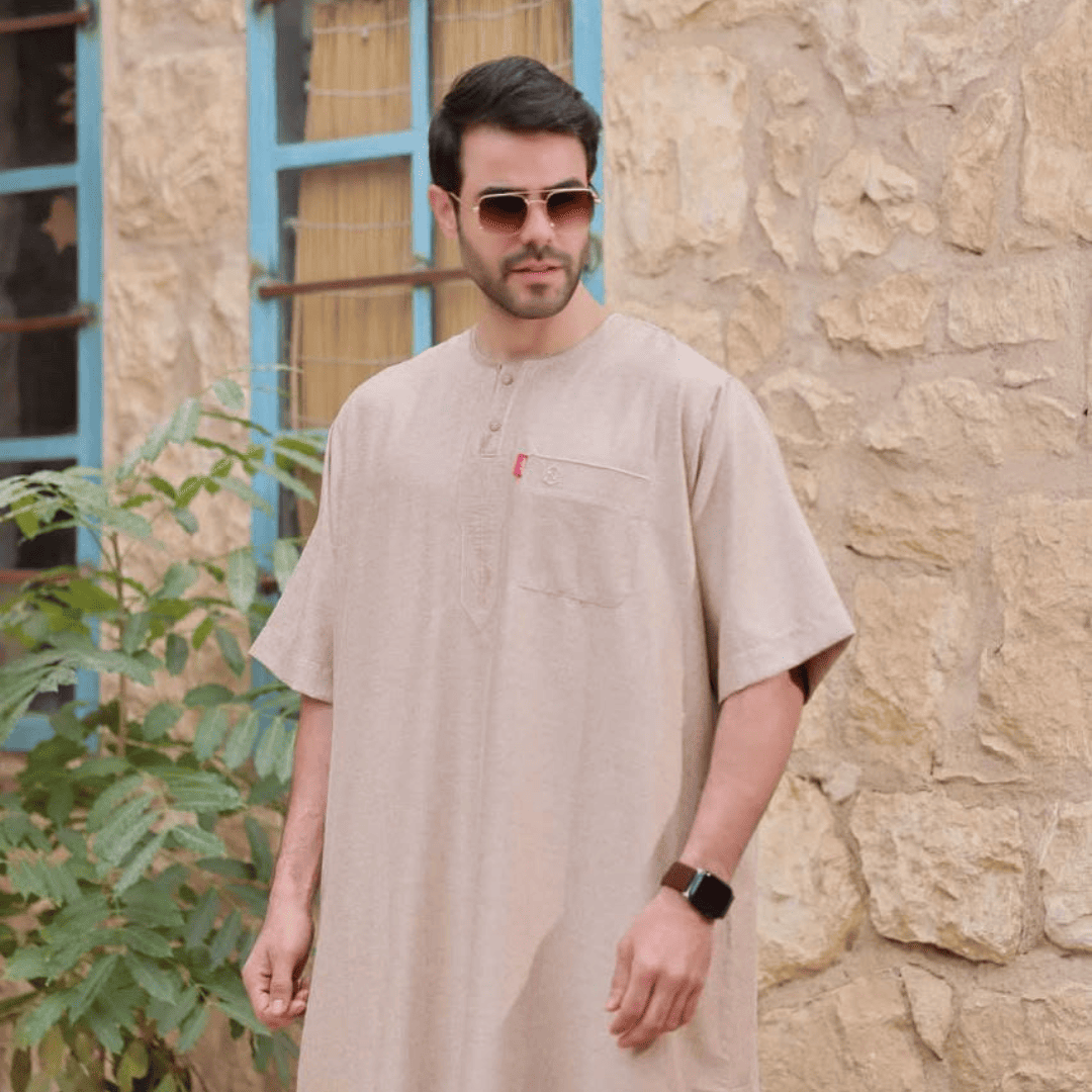 - القماش: كتان طبيعي خفيف الوزن وقابل للتهوية